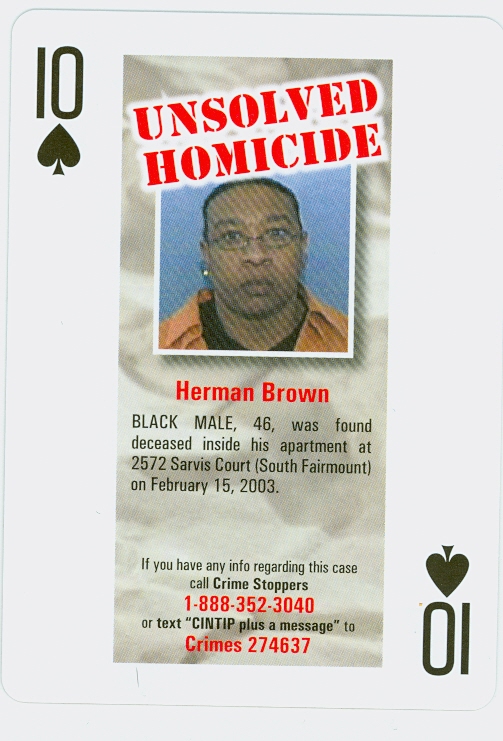 Forty six year old Herman Brown was beaten to death at 2572 Sarvis Court, Cincinnati, OH.
