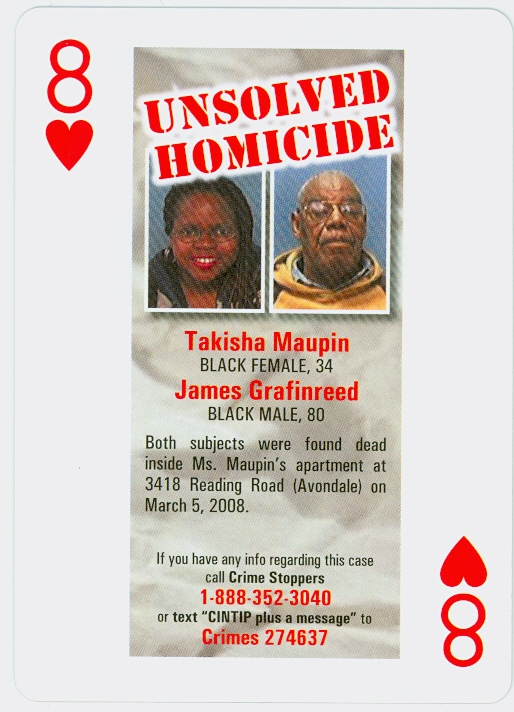 Thirty four year old Takisha Maupin was stabbed to death inside her home at 3418 Reading Road #329, Cincinnati, OH, along with James Grafinreed.