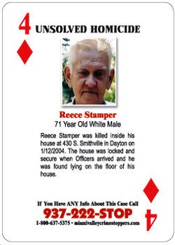 Reece Stamper was killed inside his house at 430 South Smithville in Dayton on 01/12/2004. The house was locked and secure when officers arrived and he was found lying on the floor of his house. If you have any information about this case, please contact Miami Valley Crime Stoppers at 937-222-STOP, 1-800-637-5375 or miamivalleycrimestoppers.com.
