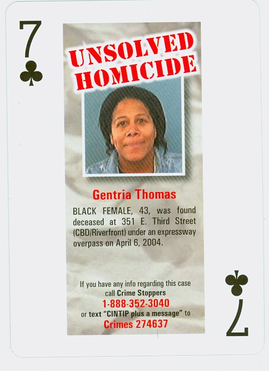 Forty three year old Gentria Lynn Thomas was strangled at 351 East Third Street, Cincinnati, OH.
