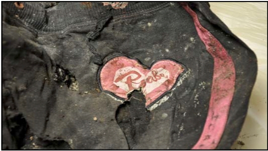 The woman is believed to be Caucasian, between 25-50 years old, and between 5'5'' to 5'10''. She was wearing a medium-sized white tank top with small stripes, a size 40D bra, and black sweatpants with a pink stripe up the leg and pink heart in the thigh area that said "Babe."
