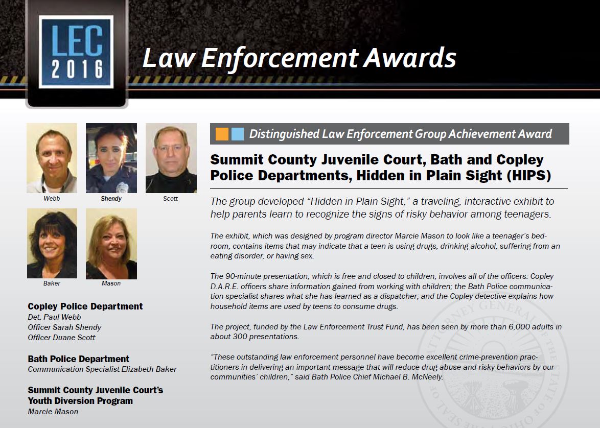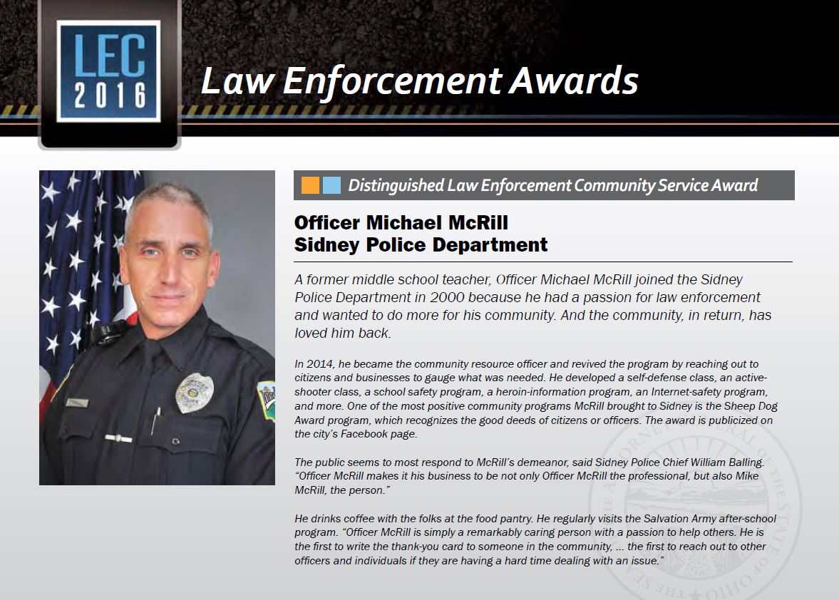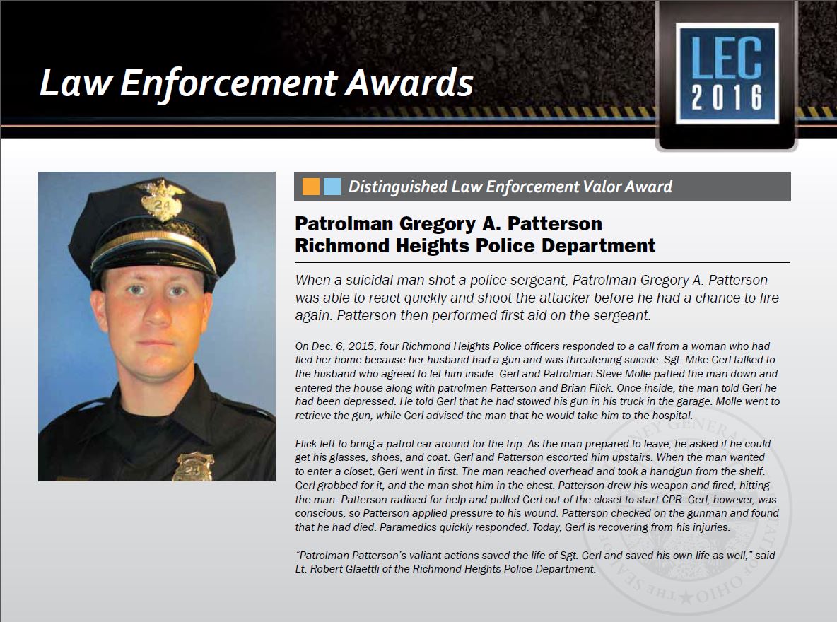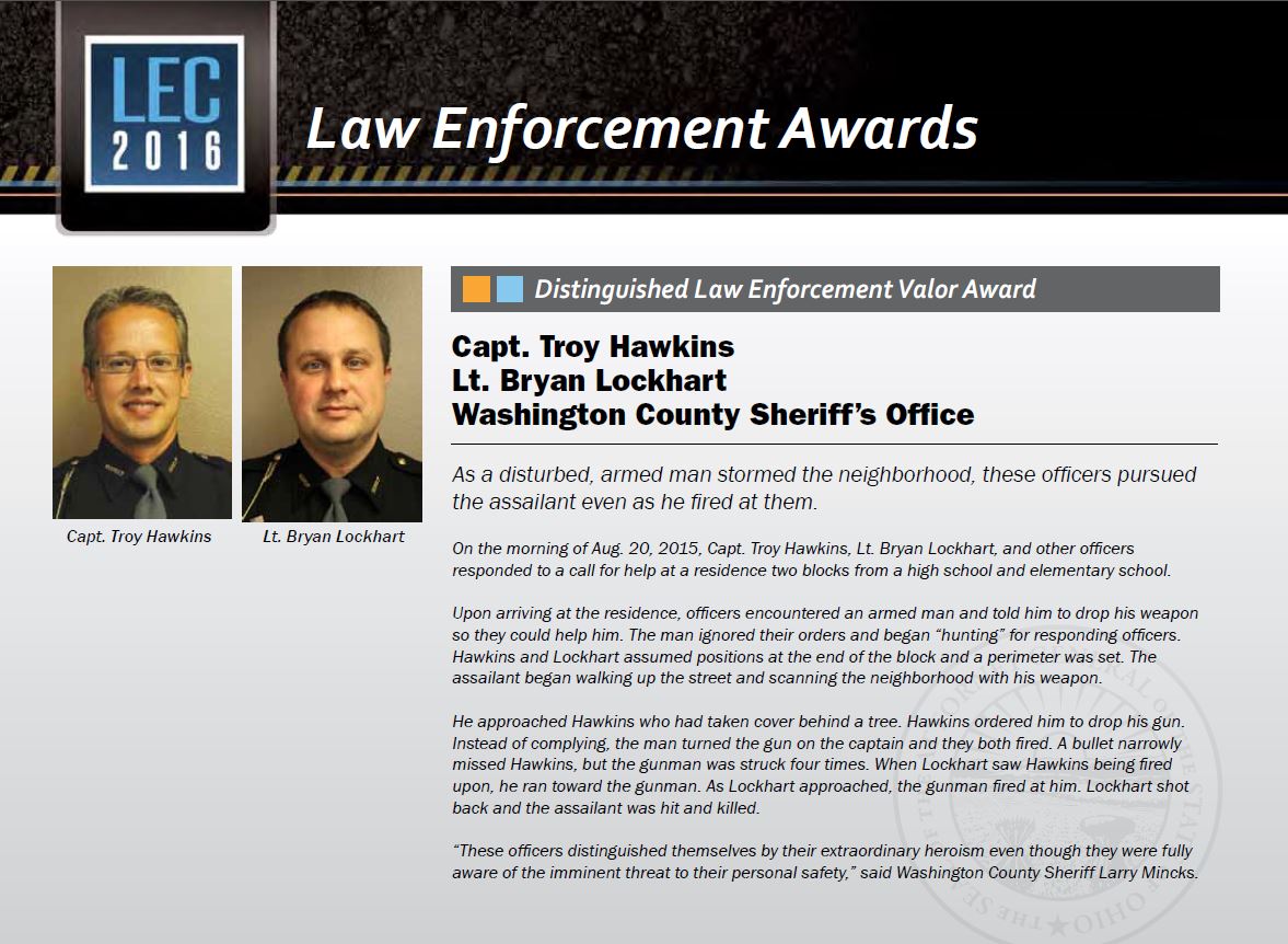"Today we are recognizing officers who have gone above and beyond to serve members of their communities in 2015," said Attorney General DeWine. "We appreciate their hard work and dedication to protecting Ohio's families."