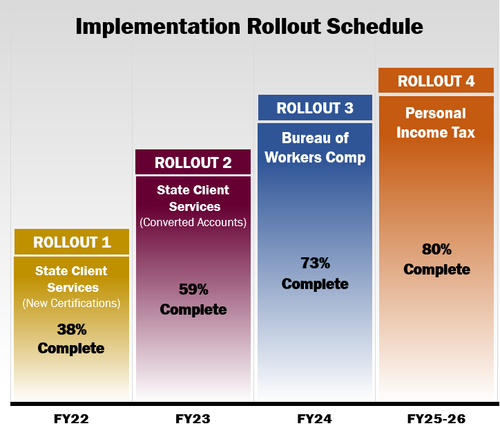The CARES Debt Manager Implementation Rollout 4 for the Personal Income Tax business class is another significant step towards modernizing debt management processes. With a continued focus on efficiency, client satisfaction, and scalability, we are committed to delivering top-notch debt management services to our clients. The Rollout 4 planning phase begins on July 1, 2024, with design sessions commencing on July 29, 2024. We eagerly anticipate Go Live by late summer 2025. Stay tuned for more updates as we progress on this exciting system conversion journey!
