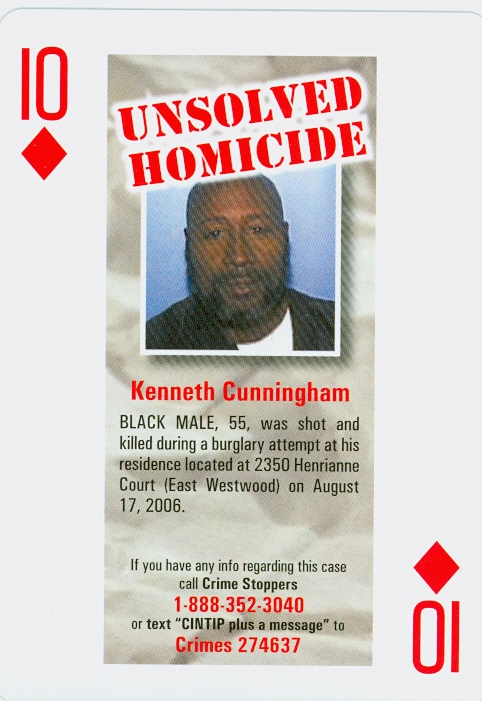 Fifty five year old Kenneth Cunningham was shot at 2350 Henrianne Court, Cincinnati, OH.