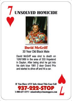 David McGriff was shot to death on 10/06/1989 in the area of 333 Hopeland in Dayton. After being shot, he got into his dark blue 1981 two door Grand Prix and started to drive off and hit a hit a car. If you have any information about this case, please contact Miami Valley Crime Stoppers at 937-222-STOP, 1-800-637-5375 or miamivalleycrimestoppers.com.