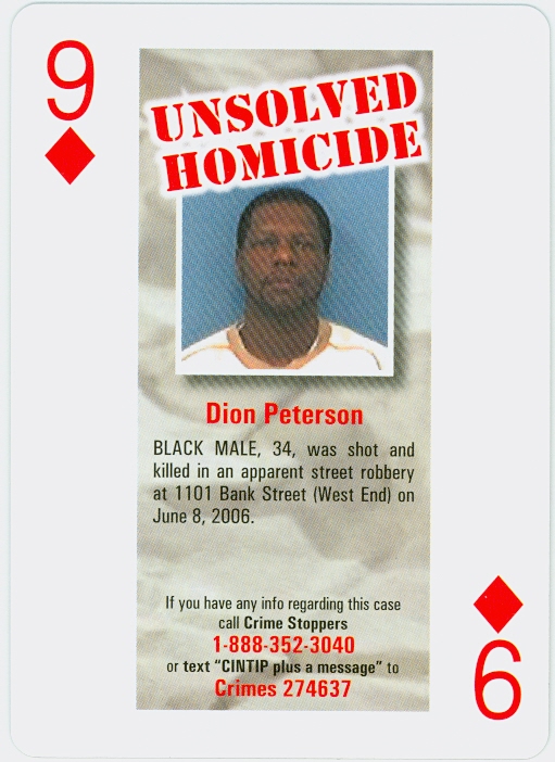 Thirty four year old Dion Peterson was shot at 1101 Bank Street, Cincinnati, OH.