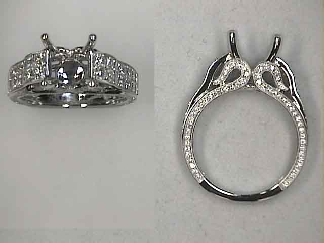 The setting for the white gold, princess cut diamond engagement ring is pictured below.