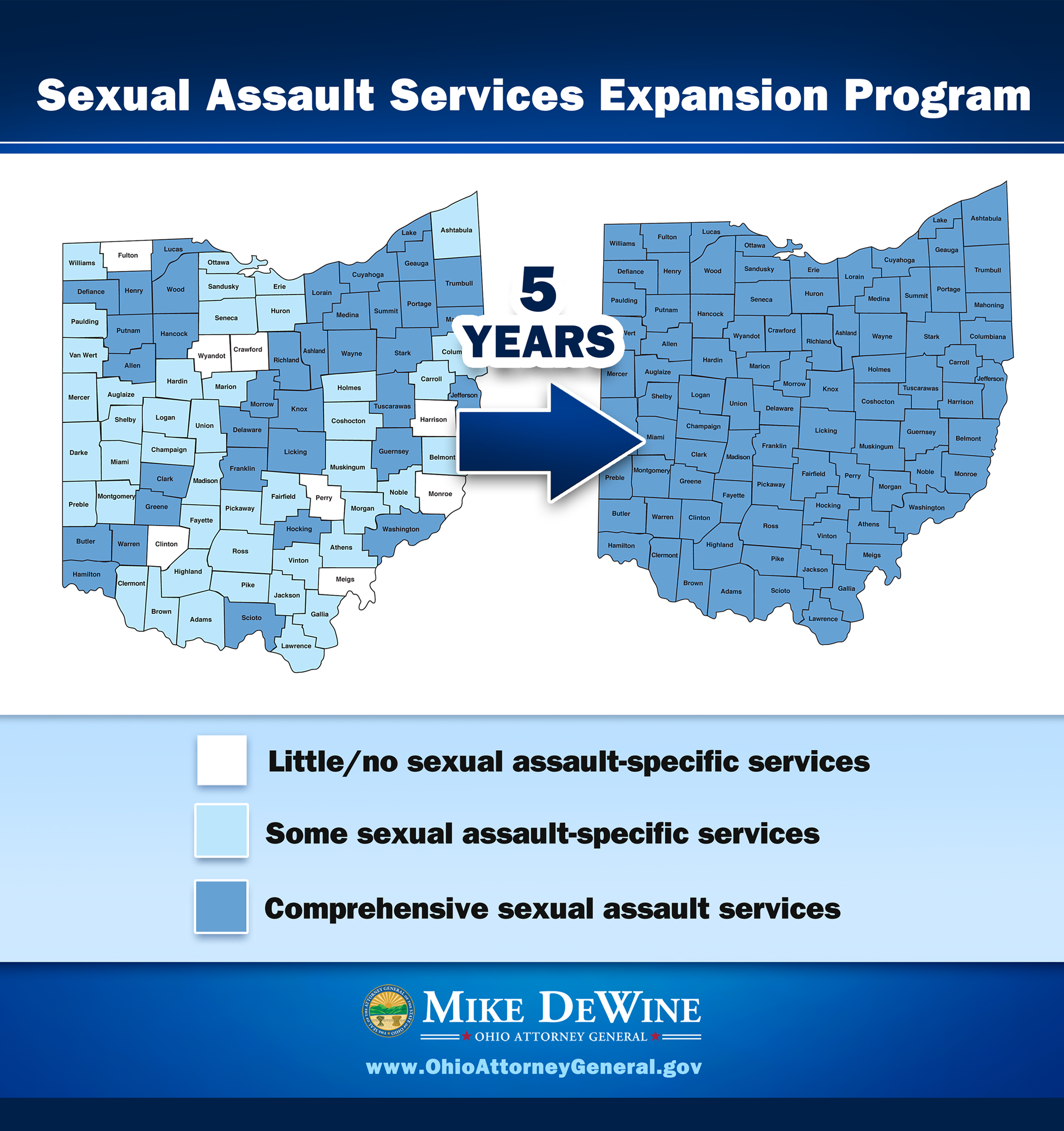 The formation of the new Sexual Assault Services Expansion Program comes after a survey conducted by the Attorney General's Office found that 59% of Ohio's counties do not have comprehensive, direct sexual assault services.