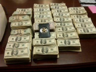 A photograph of the money found by agents.