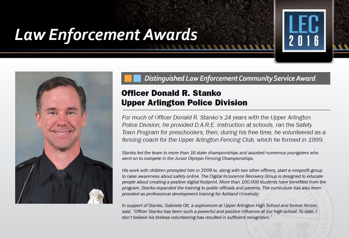 The award winners were nominated by their colleagues and selected by members of the 2016 Law Enforcement Awards Committee.