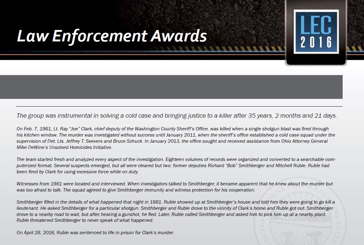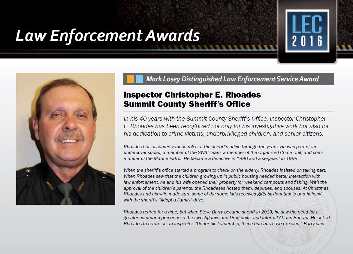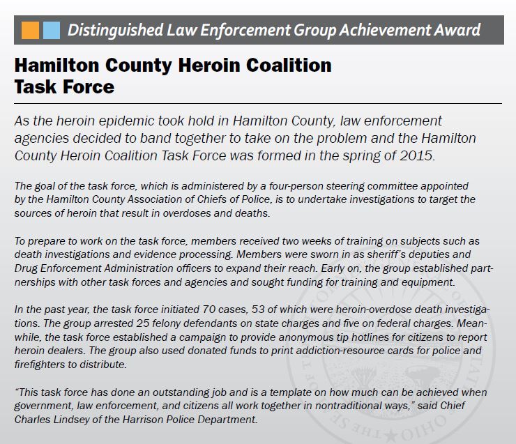 "Today we are recognizing officers who have gone above and beyond to serve members of their communities in 2015," said Attorney General DeWine. "We appreciate their hard work and dedication to protecting Ohio's families."